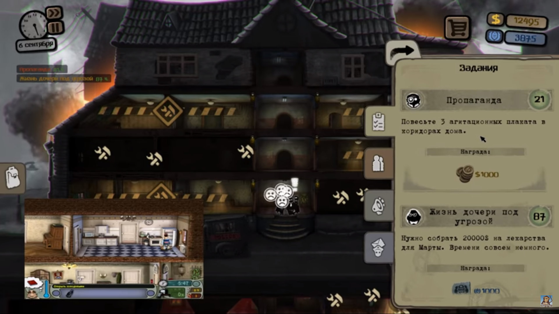 Дом становится маленьким миром, где каждое помещение — отдельная история. Кто-то ругается за закрытой дверью, кто-то скрывает прошлое, кто-то мечтает уехать. Вы быстро запоминаете привычки жильцов и чувствуете, что вмешиваетесь в их личную жизнь сильнее, чем хотелось бы.