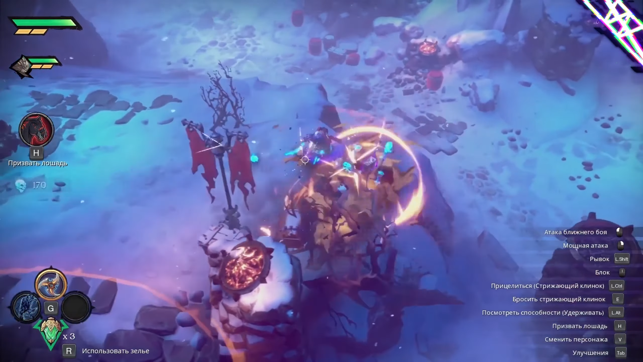 Ключевая особенность игры — два Всадника с принципиально разными подходами. Война делает ставку на давление и ближний бой, полагаясь на силу и контроль пространства. Раздор предпочитает дистанцию, мобильность и огнестрельное оружие.