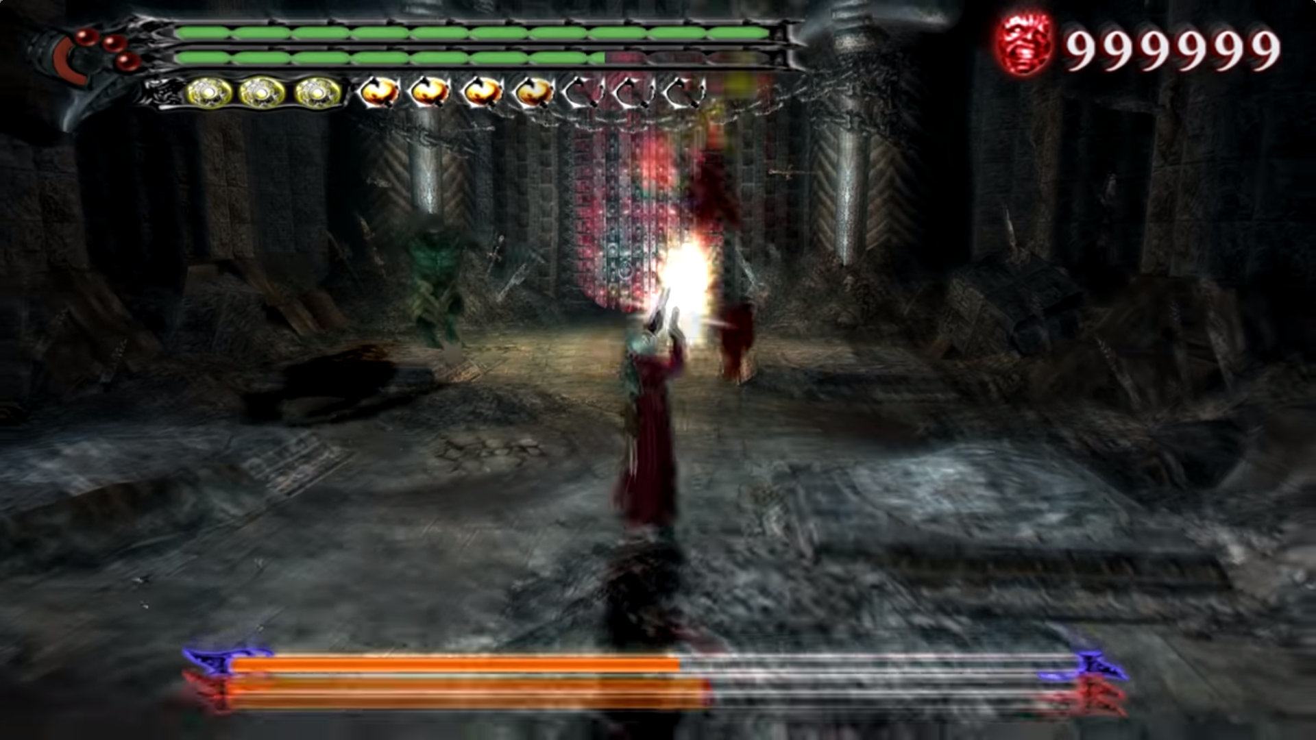 А вот третья — это уже скорость и азарт. Игра чаще подталкивает рисковать, продолжать комбо и собирать связки из приёмов так, чтобы это выглядело как шоу. Здесь сильнее всего раскрывается то, за что серию любят: ты не просто побеждаешь, ты делаешь это эффектно — особенно заметно это на фоне других частей, собранных в Devil May Cry HD Collection.