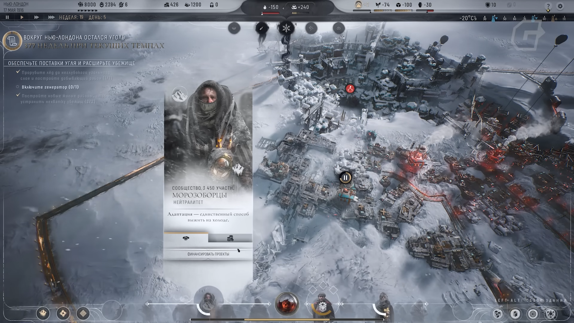Frostpunk 2 делает акцент не только на нехватке ресурсов, но и на конфликте интересов. Разные группы по-разному видят будущее и пытаются влиять на развитие города. Из-за этого каждое решение становится частью более широкой борьбы за направление развития.