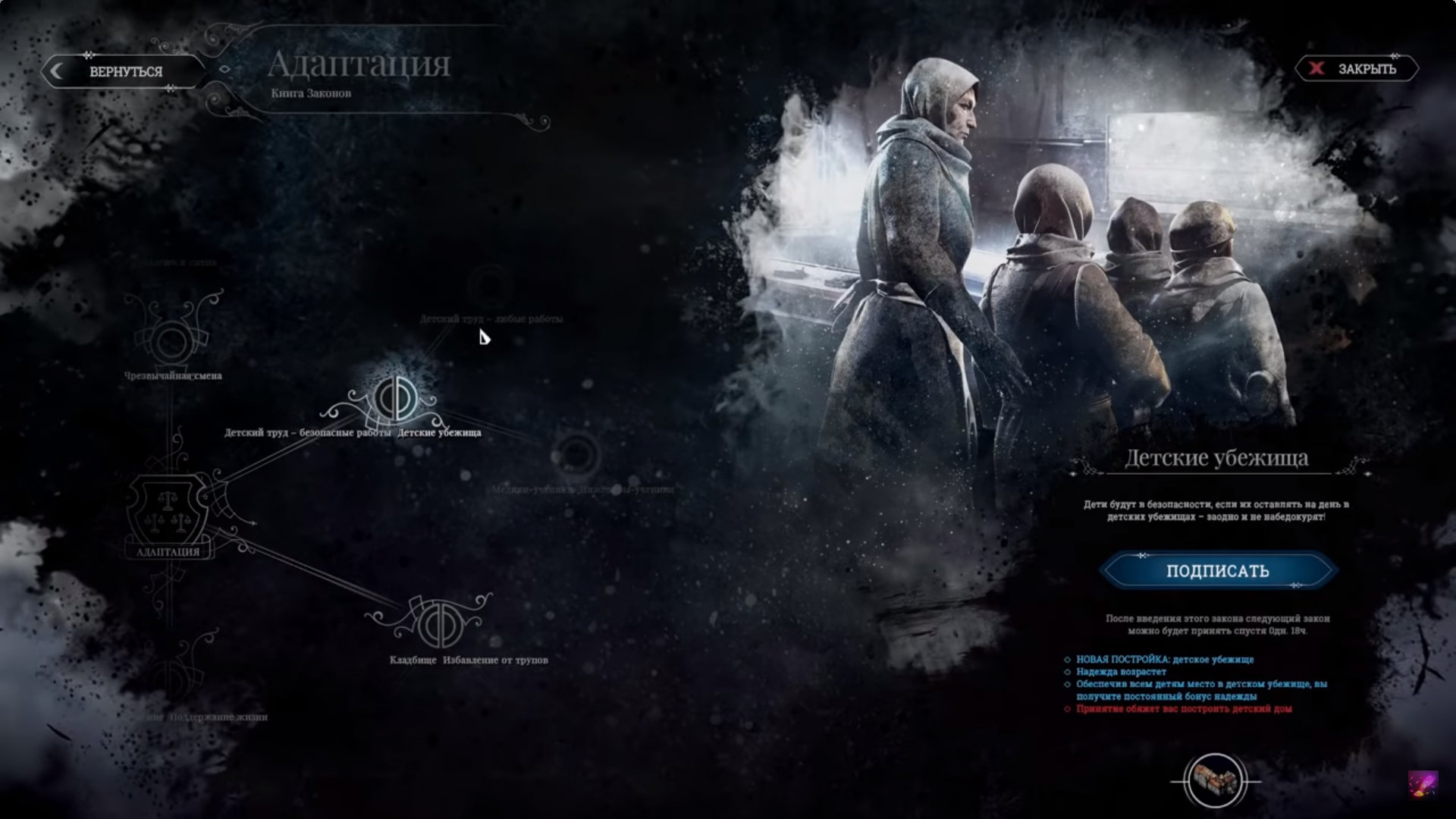 Принимайте законы, которые регулируют жизнь растущего населения. Устанавливайте рабочие часы, обеспечивайте медицинскую помощь и продовольствие, а также определяйте другие аспекты повседневной жизни. Давайте людям надежду и удовлетворяйте их потребности – поддерживать моральный дух людей также важно, как давать им пищу и кров.