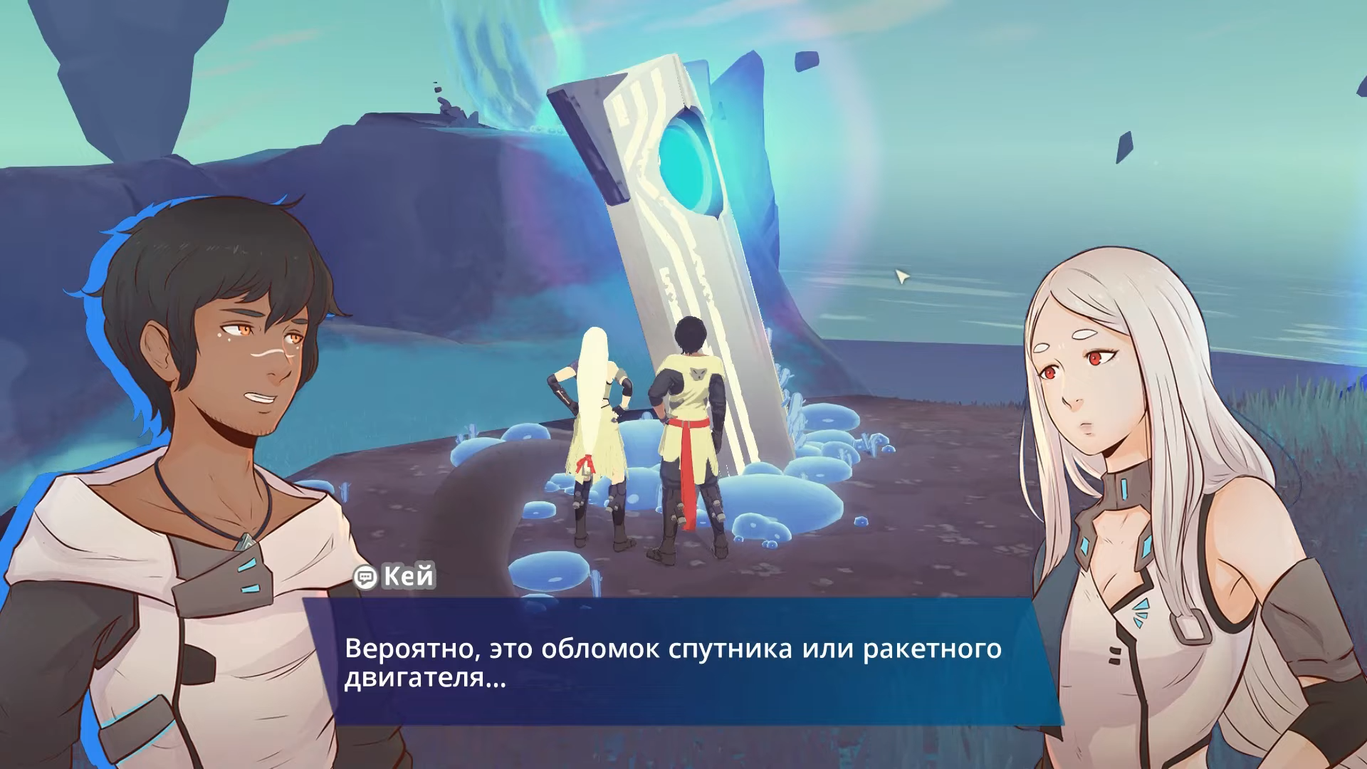 Планета разбита на отдельные фрагменты, и передвижение становится важной частью процесса. Герои скользят над поверхностью на антигравитационных ботинках, оставляя за собой светлый след. Исследование — это не только поиск новых мест, но и работа с окружающим миром.