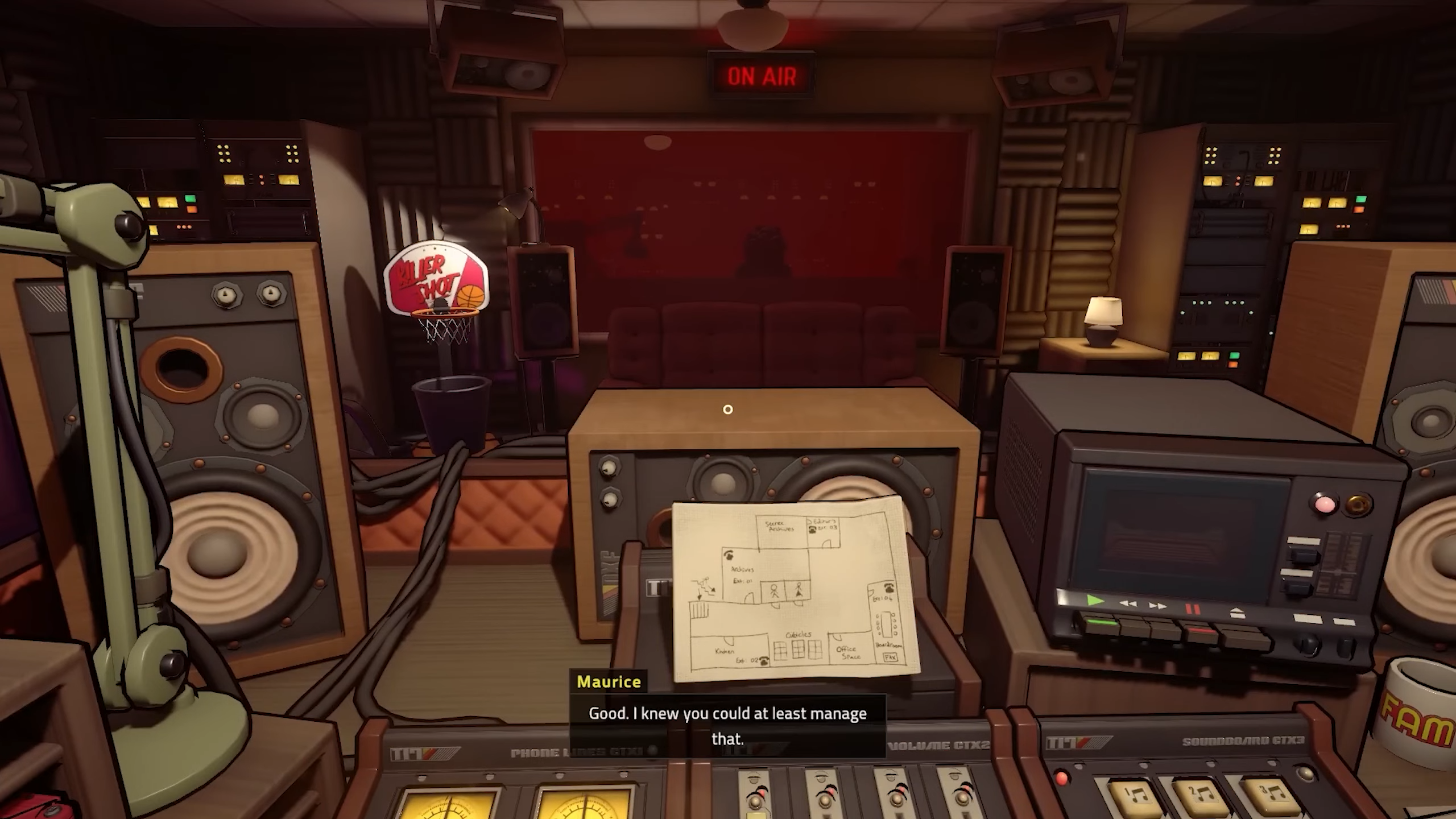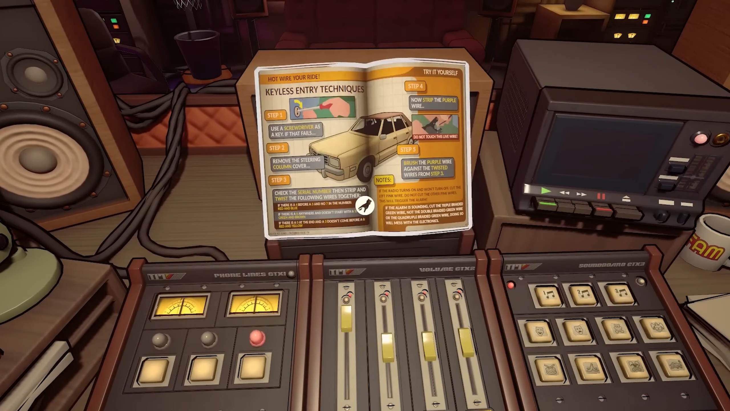 Каждый сантиметр вашей радиостанции создан с любовью и вниманием к мельчайшим деталям. Практически с каждым артефактом ушедшей эпохи здесь можно взаимодействовать — например, поставить в магнитофон кассету с любимой музыкой.