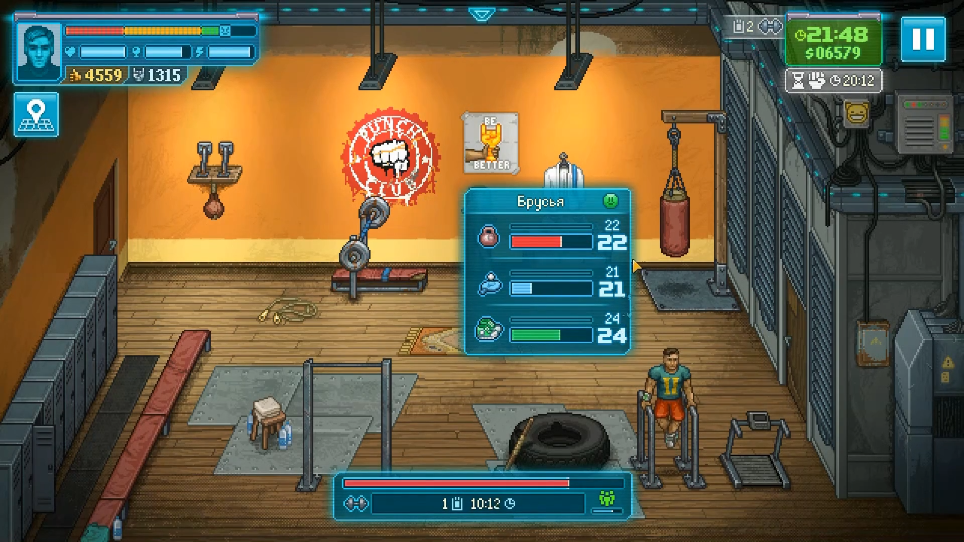 В бесконечной суматохе жизнь пролетает стремительно, время уходит безвозвратно. Чтобы выжить, нужно уметь эффективно планировать. В игре Punch Club 2 всё как в жизни — на то она и симулятор! Планируй свое время и бюджет и пробейся в высшую лигу! Раскрывай преступления, работай на полицию, на мафию — да на кого угодно. Выполняй задания и получай приглашения в школы, учи новые приемы, зарабатывай доллары и очки репутации. Даже фильм Lion Queen на VHS может стать твоим! Так что хватит читать описание в Steam — пора за дело!