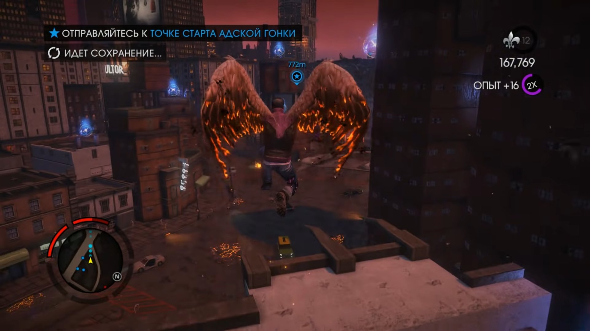 В Saints Row: Gat Out of Hell город New Hades («Новый Аид») устроен как полноценный открытый мир. Он постоянно подталкивает экспериментировать: срезать путь по крышам, резко падать вниз, взмывать в воздух и снова менять маршрут.