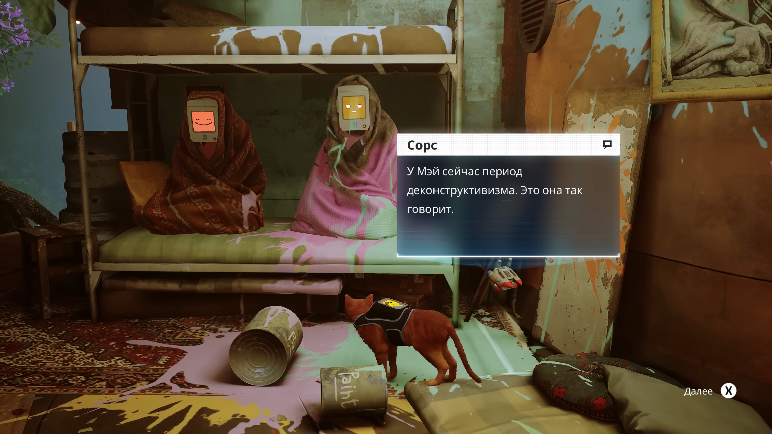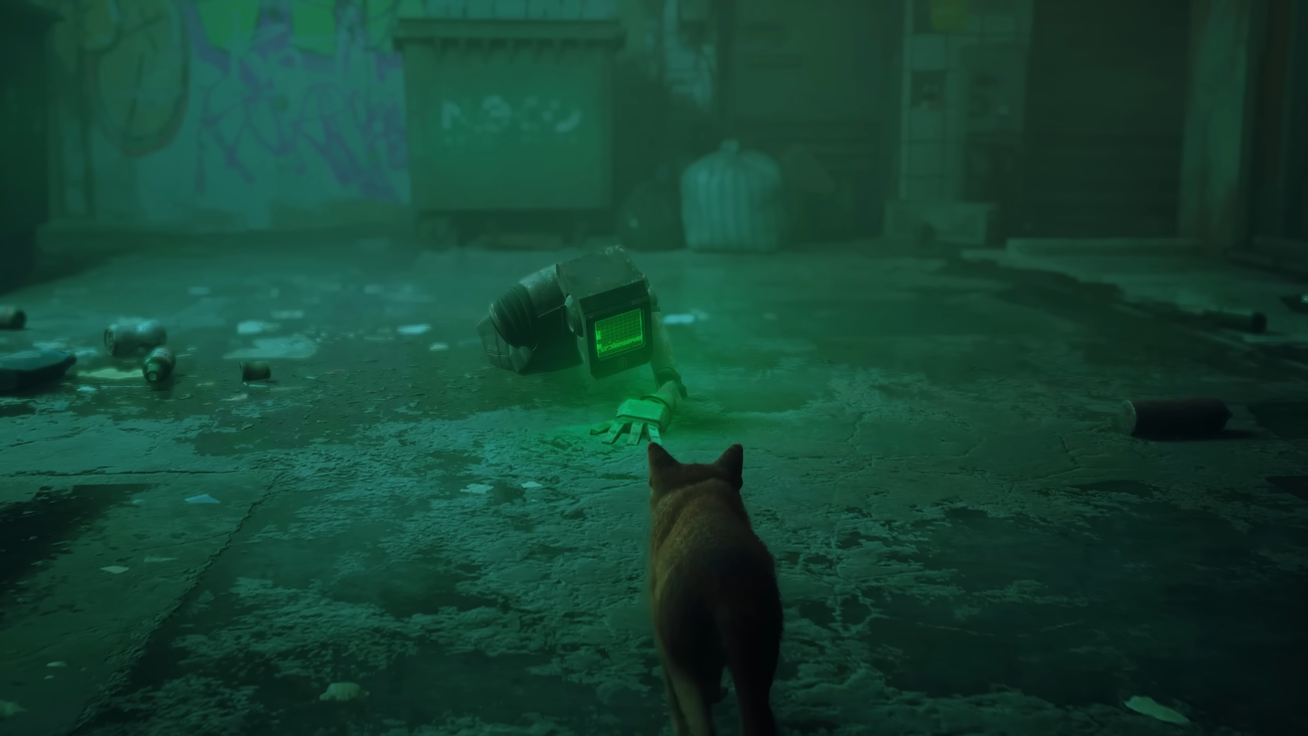 Игровой ритм строится вокруг исследования, простых головоломок и внимательного выбора маршрута. Stray чаще предлагает не «победить», а «разобраться»: как устроен квартал, где безопаснее, кому можно доверять, какие ходы скрыты наверху или в узких проходах. Иногда спокойствие сменяется опасностью — приходится убегать, прятаться, действовать быстро, как животное в незнакомой среде. При этом игра постоянно удерживает перспективу кота: мир кажется огромным, двери выглядят как стены, а узкая щель может стать спасением.