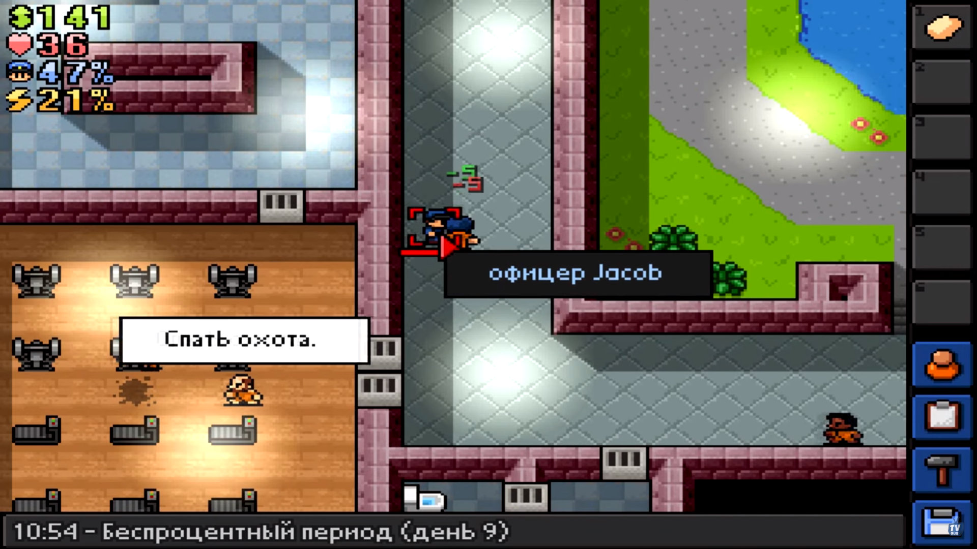 Тюрьма в The Escapists нарочно выглядит безобидно: пиксельная графика, лёгкая ирония, ощущение ретро. Но за внешней простотой скрывается жёсткая система, где режим важнее всего. Подъём, перекличка, работа, обед, душ, свободное время, отбой — день за днём вы живёте по правилам, которые не интересуются вашим удобством.