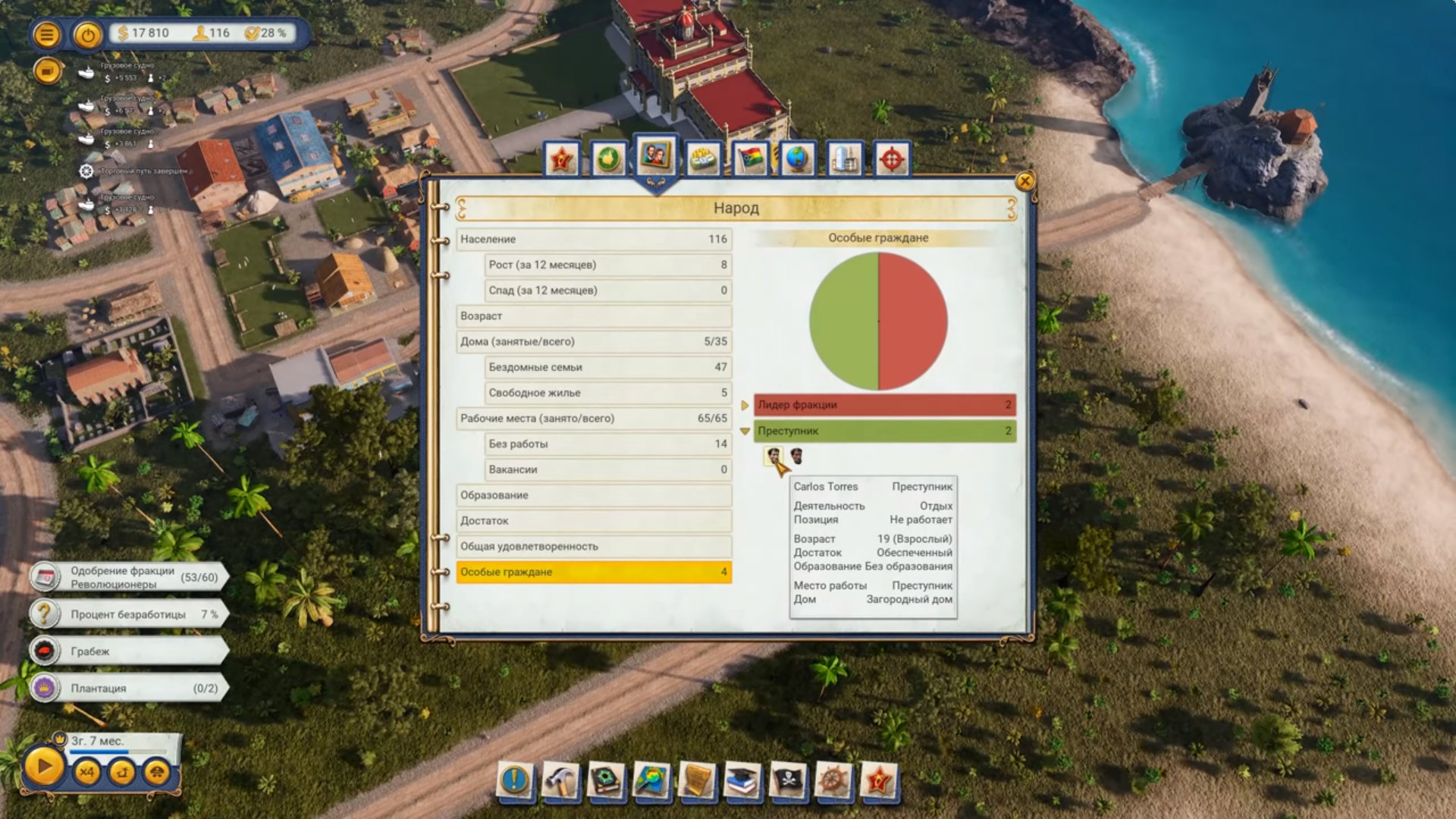 Власть в Tropico 6 El Prez Edition — это всегда представление. Вы выступаете с речами, заигрываете с фракциями, сталкиваете интересы и стараетесь выглядеть уверенно даже тогда, когда решения даются с трудом. Политика здесь не спрятана в отдельном меню — она чувствуется в темпе строительства, настроении жителей и в том, как меняется страна от эпохи к эпохе. Кампания и сценарии регулярно ставят перед выбором, где важен не «правильный» ответ, а стиль правления.