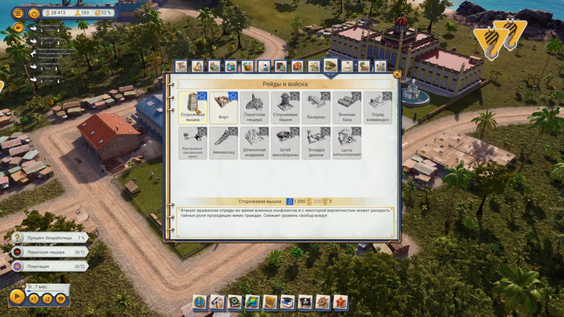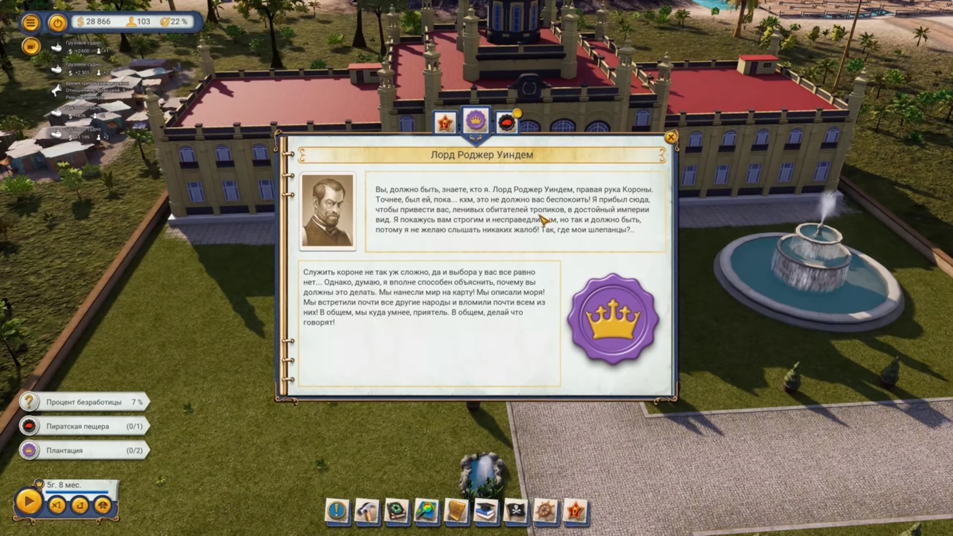Главное впечатление от Tropico 6 строится на контрасте. С одной стороны — яркий, тёплый, почти праздничный мир: лазурная вода, густая зелень, курорты, набережные, дворцы и поток туристов. С другой — постоянная работа с экономикой, дефицитом ресурсов, социальными противоречиями и политическими рисками.
